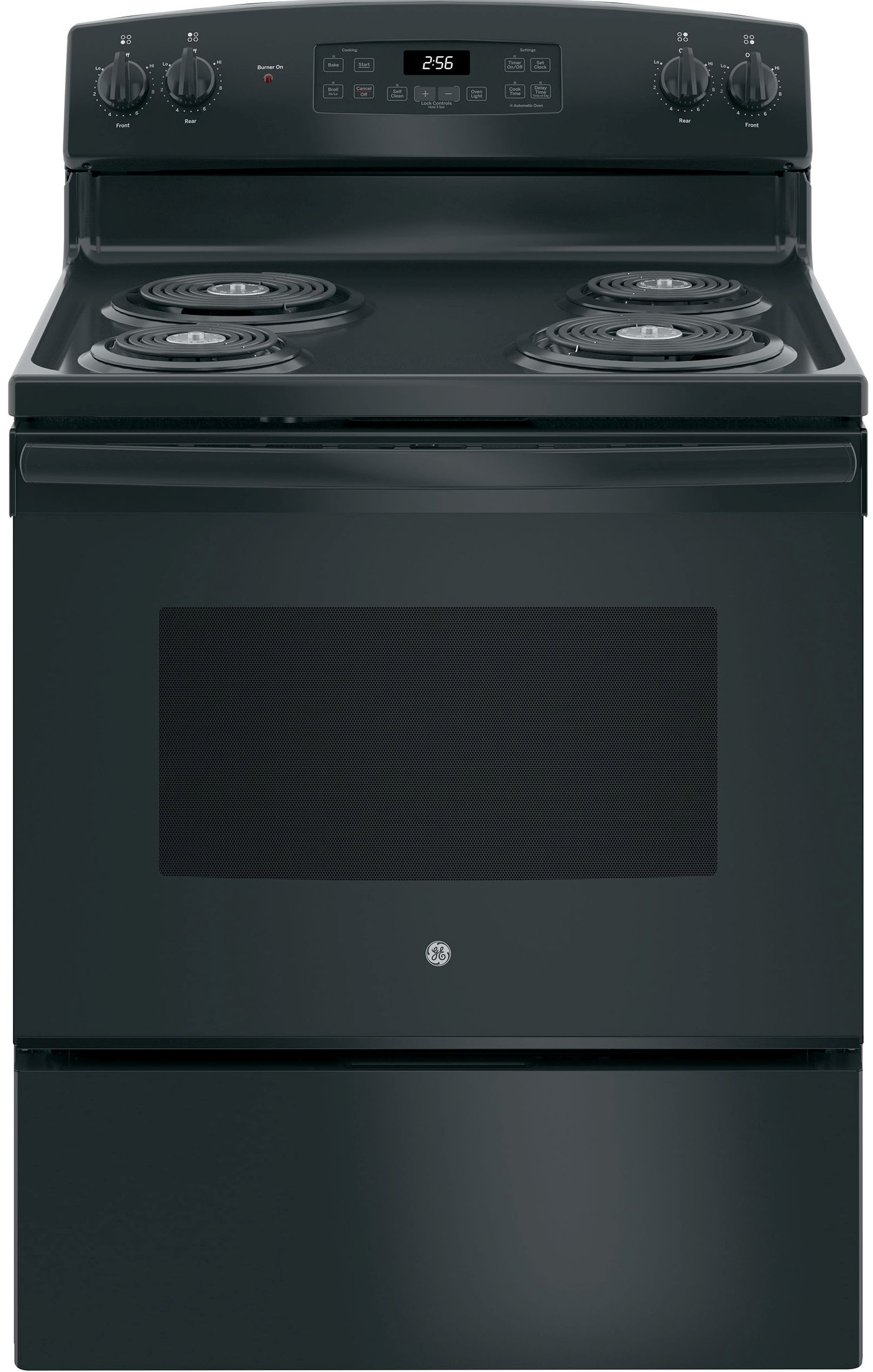 GE® 30" Black Free Standing Electric Range with 5 Cu. Ft. total capacity, storage drawer, and dual element bakeRead More